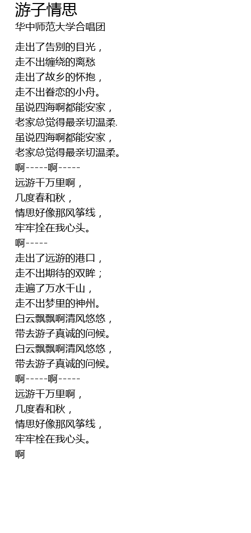 | zǒu chū le yuǎn yóu de gǎng kǒu, | |