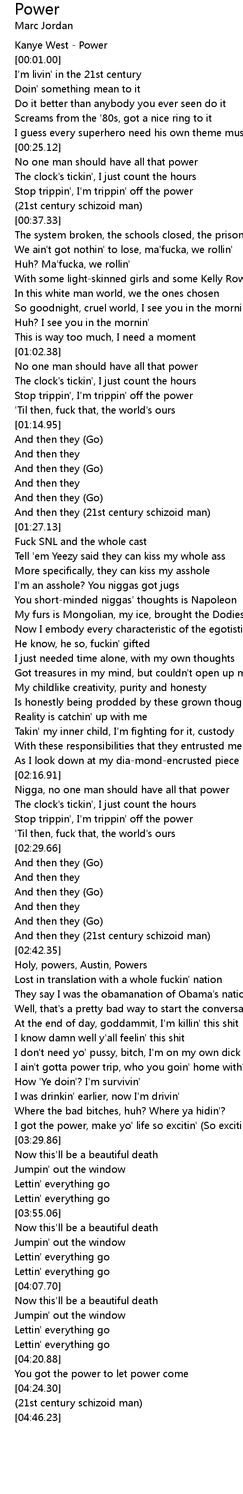 Nigga, no one man should have all that power |