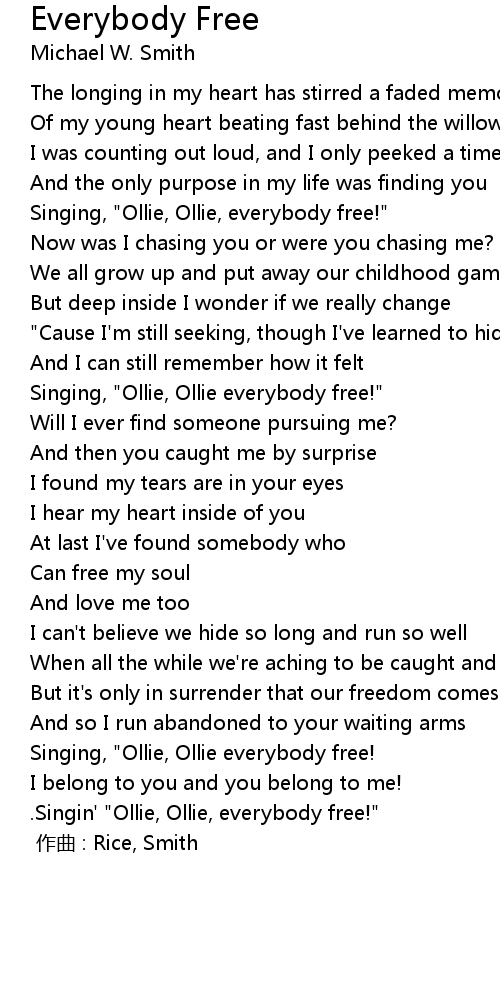 | .Singin' "Ollie, Ollie, everybody free!" | |