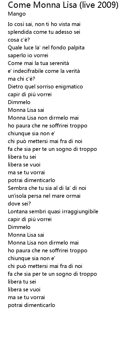 | Monna Lisa non dirmelo mai | |