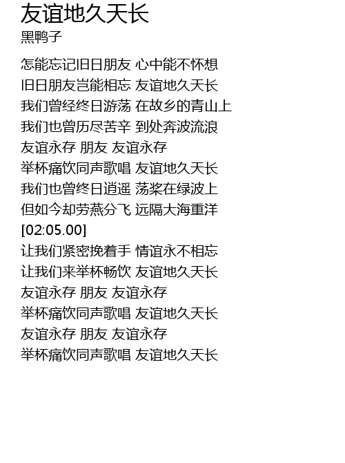 | [02:55.11] | 友谊永存 朋友 友谊永存 |