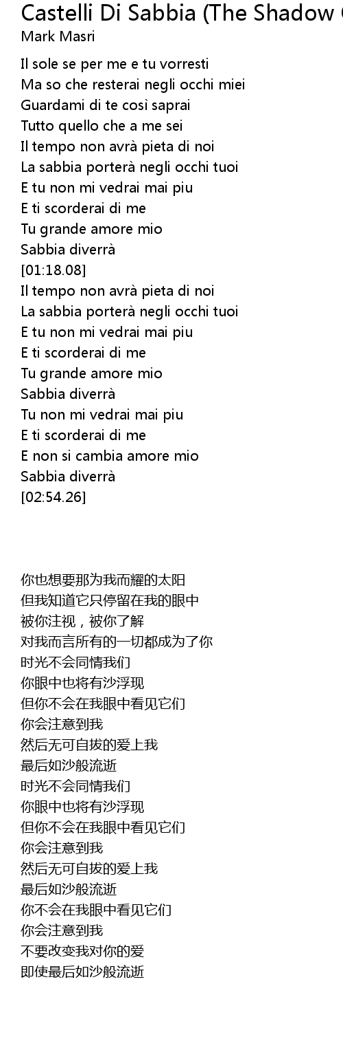 | [02:00.86] | La sabbia portera negli occhi tuoi |