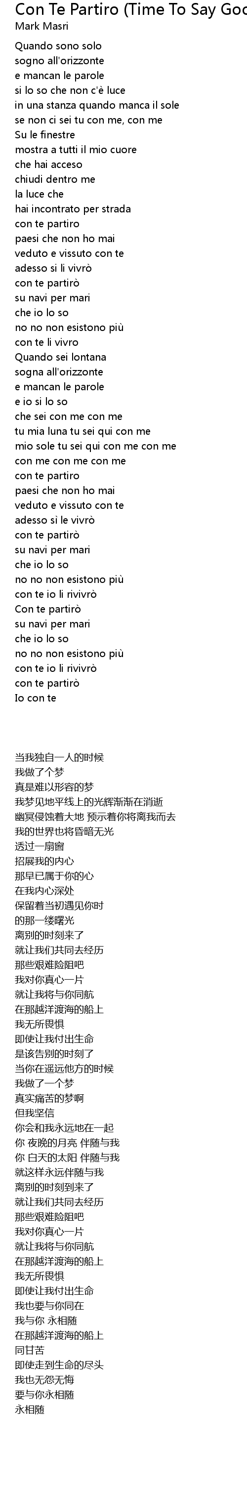 | Song | Con Te Partiro (Time To Say Goodbye) |