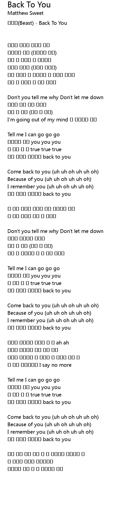 | 비스트(Beast) - Back To You | |