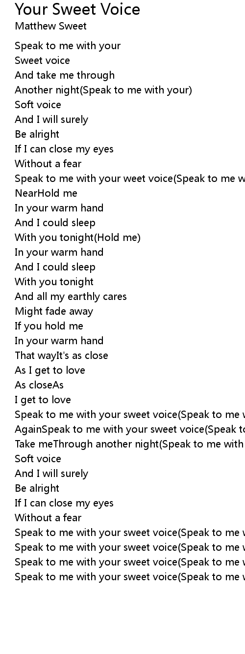 Speak to me with your weet voice(Speak to me with your weet voice ) |