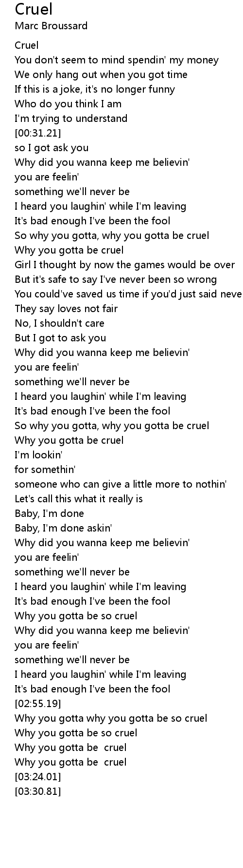 Why you gotta why you gotta be so cruel |