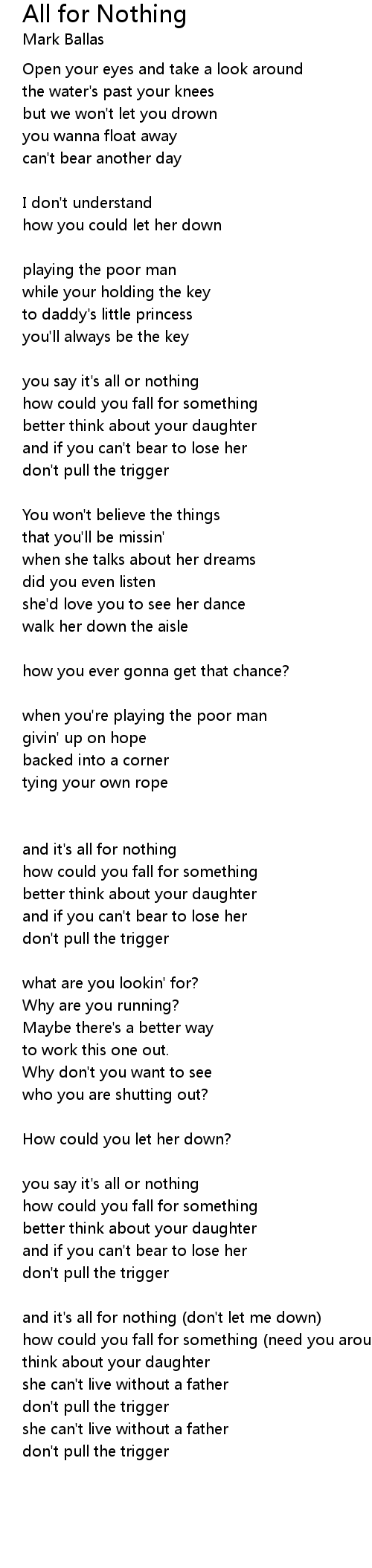 and it's all for nothing (don't let me down) |