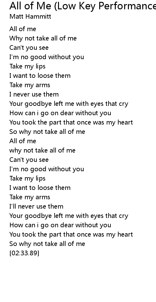 All of Me (Low Key Performance Track Without Background Vocals) Lyrics