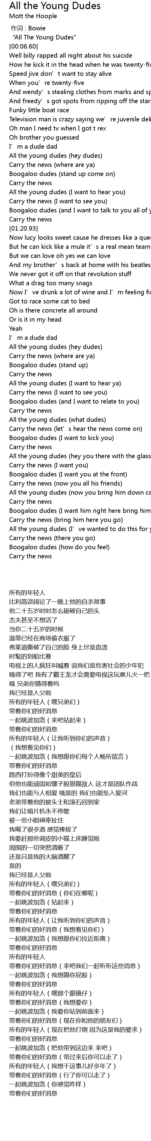 | [01:08.75] | All the young dudes (I want to hear you) |