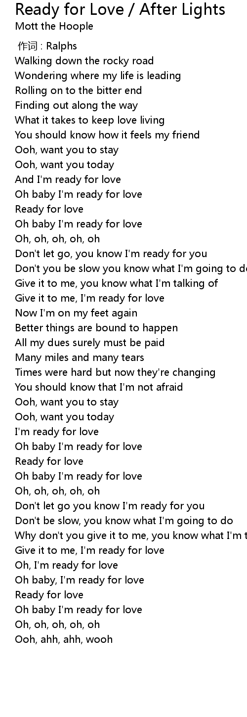 | [01:20.490] | Oh baby I'm ready for love |