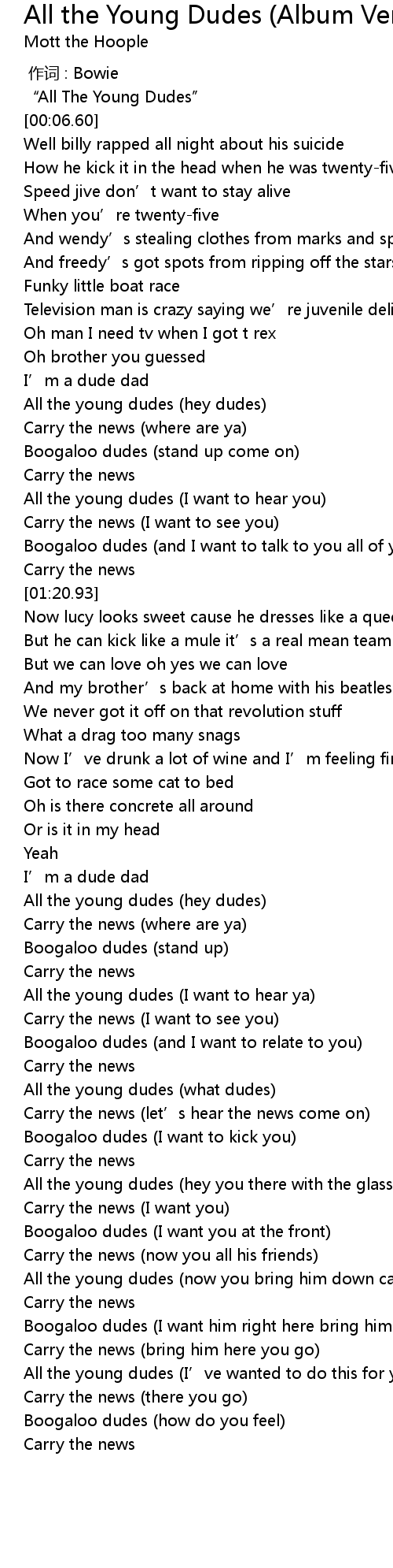 | [02:17.95] | All the young dudes (I want to hear ya) |