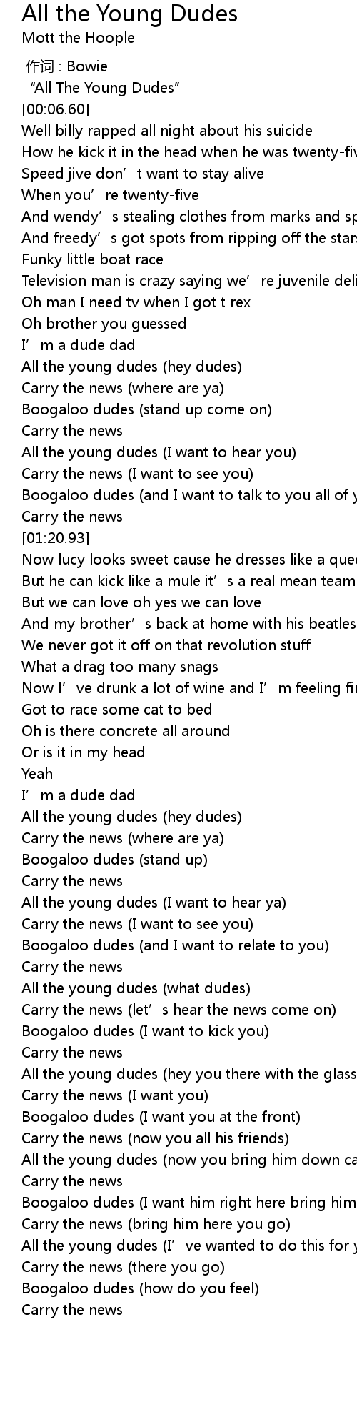 | [02:03.37] | All the young dudes hey dudes |