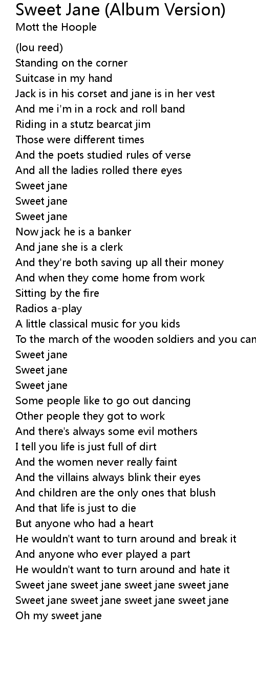 Sweet jane sweet jane sweet jane sweet jane |
