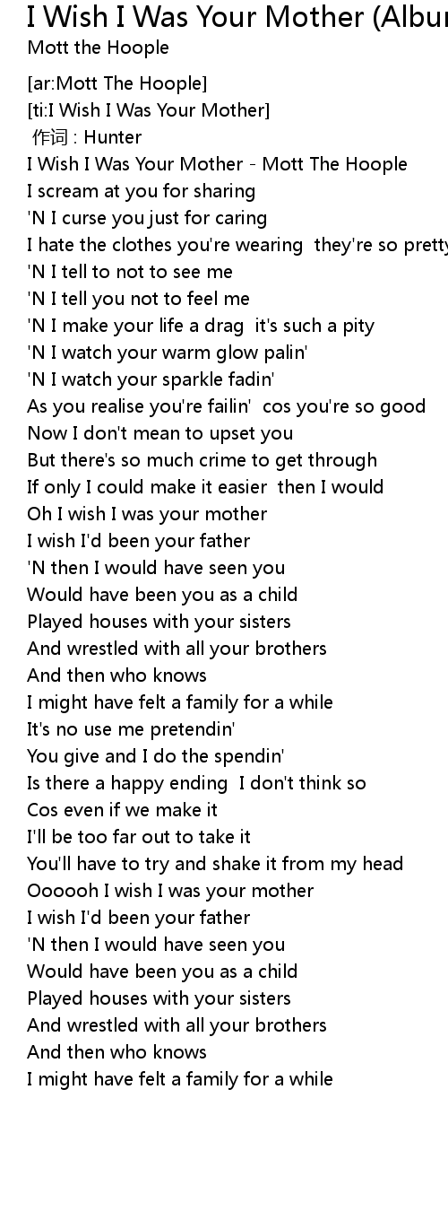 | [00:01.06] | I Wish I Was Your Mother Mott The Hoople |