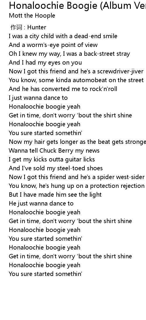 | [00:49.65] | Honaloochie boogie yeah |