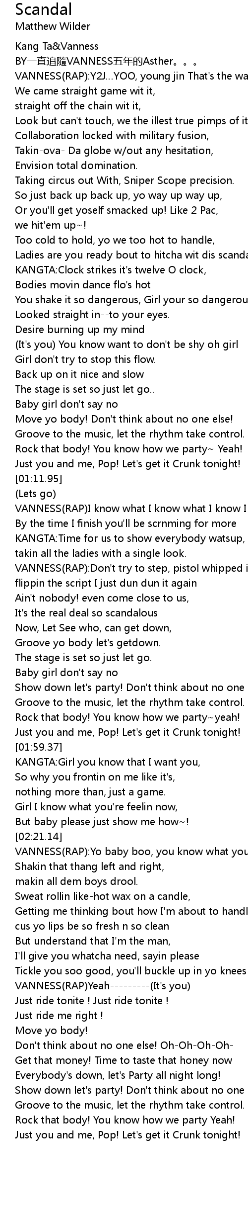 | [00:25.06] | Ladies are you ready bout to hitcha wit dis scandal~ |