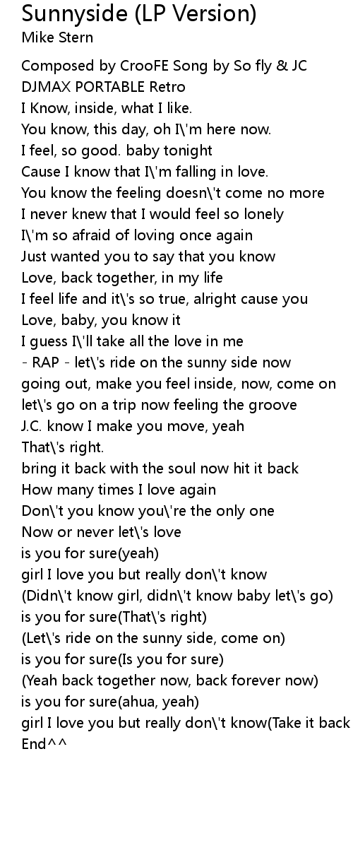 (Let\'s ride on the sunny side, come on) |