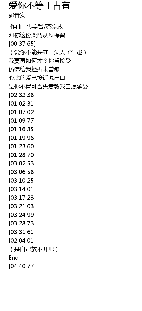 | [04:04.63][03:31.61][01:59.63] | 都不等于占有 |