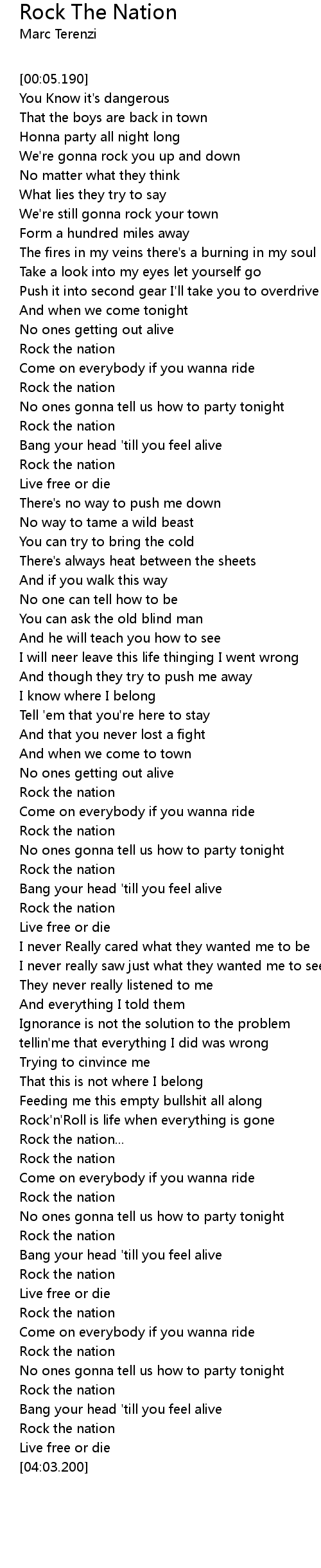 | [03:44.600] | Rock the nation |
