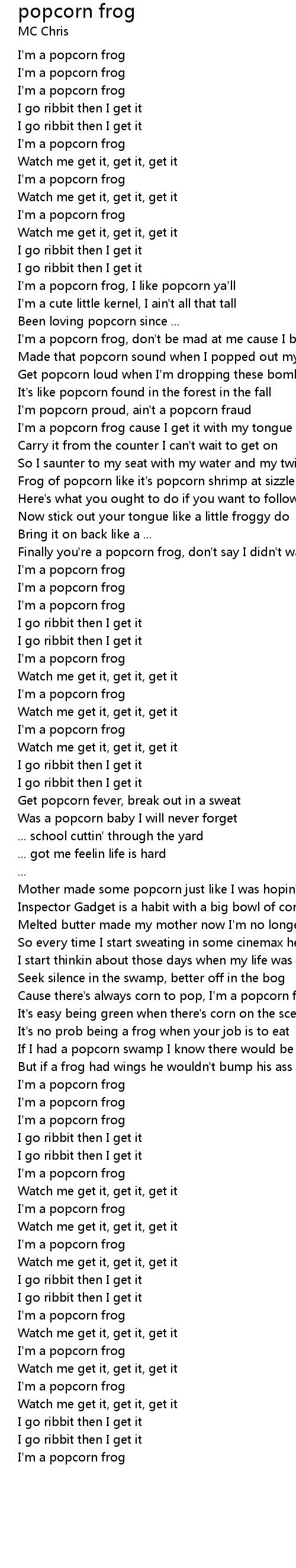 | Cause there's always corn to pop, I'm a popcorn frog | |