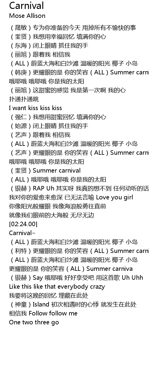 | [02:53.01] | gèng yào yǎn de shì nǐ de xiào róng ALL Summer carniva |