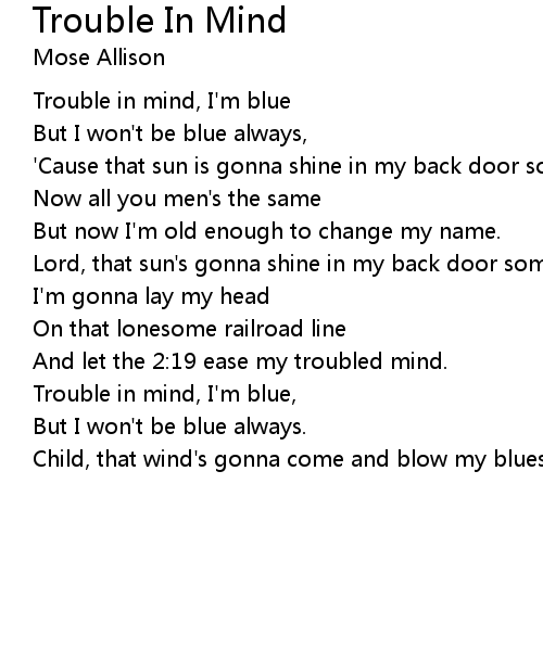| Trouble in mind, I'm blue | |