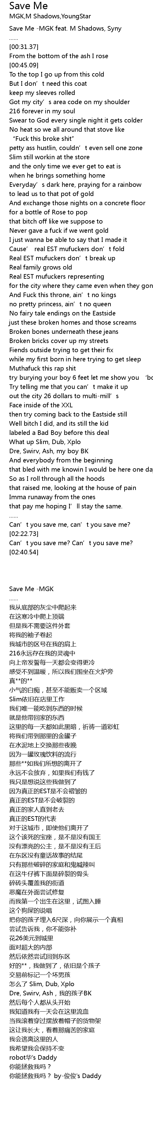 | [00:00.87] | Save Me -MGK feat. M Shadows, Syny |