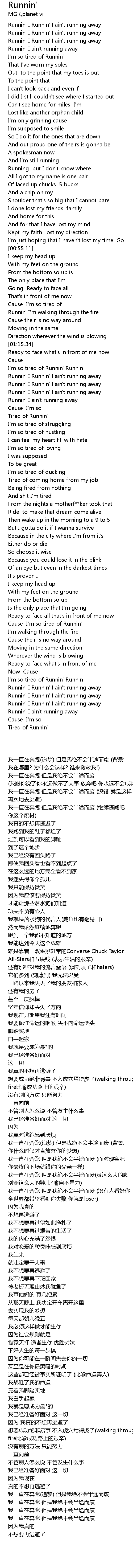 | [01:23.16] | Runnin' I Runnin' I ain't running away |