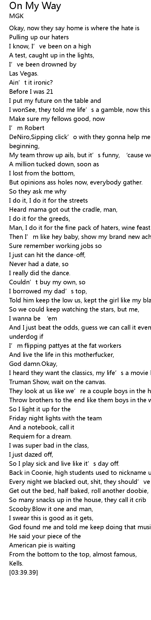 | [03:29.49] | God found me and told me keep doing that music shit. |