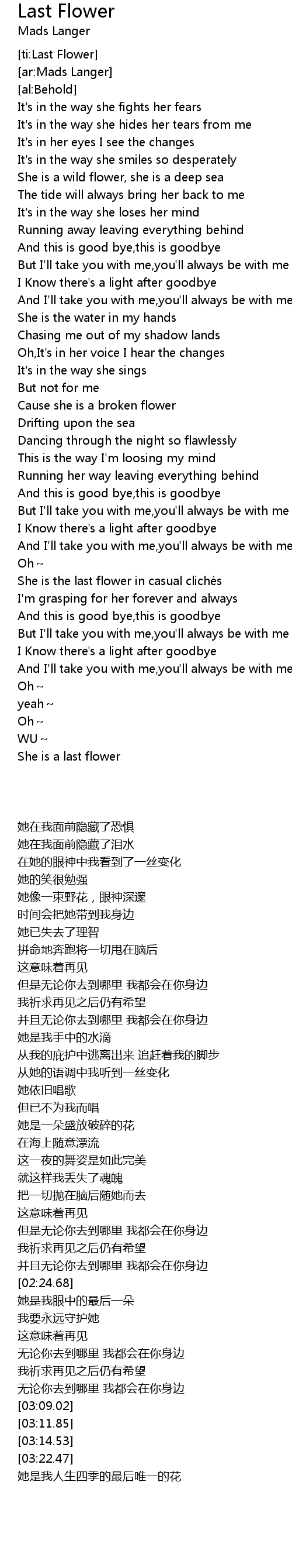 | [00:27.39] | She is a wild flower, she is a deep sea |