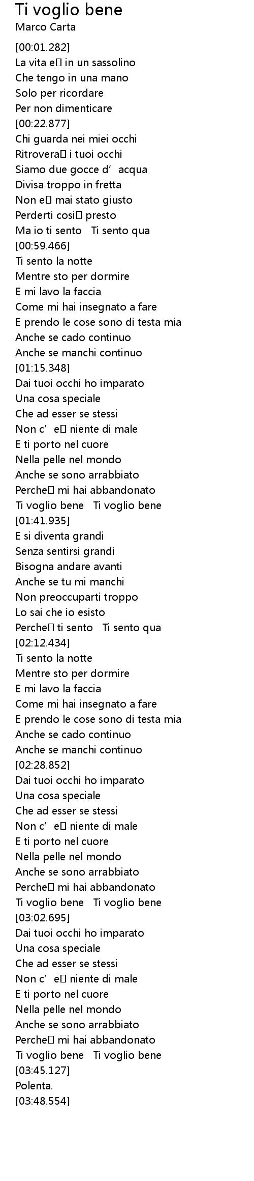 | [03:35.469] | Ti voglio bene Ti voglio bene |