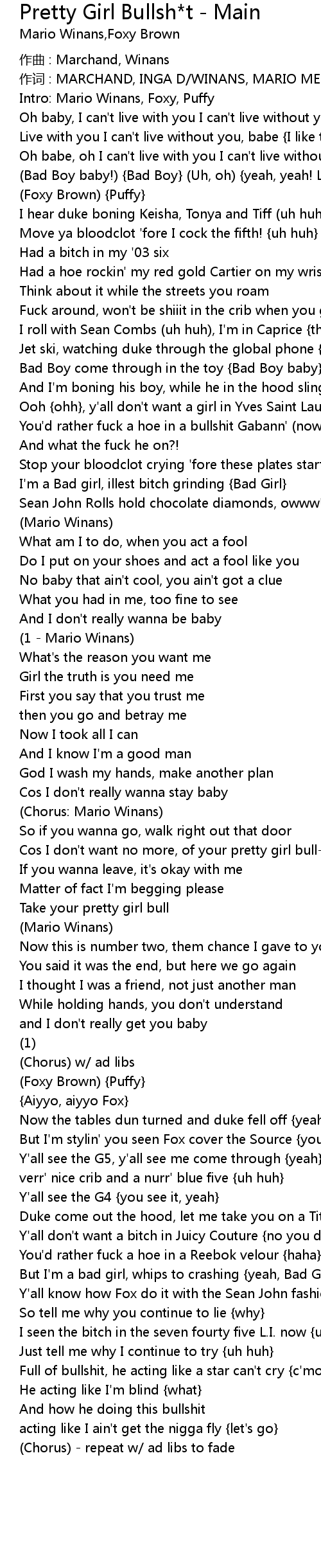 | Cos I don' t want no more, of your pretty girl bullish | |