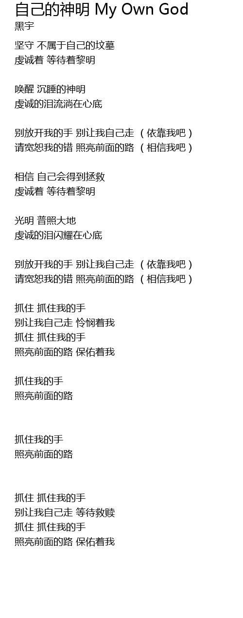 | 请宽恕我的错 照亮前面的路 (相信我吧) | |