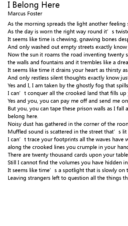 | But you, you can tape these prison walls as I fall asleep, But I belong here, I belong here. | |