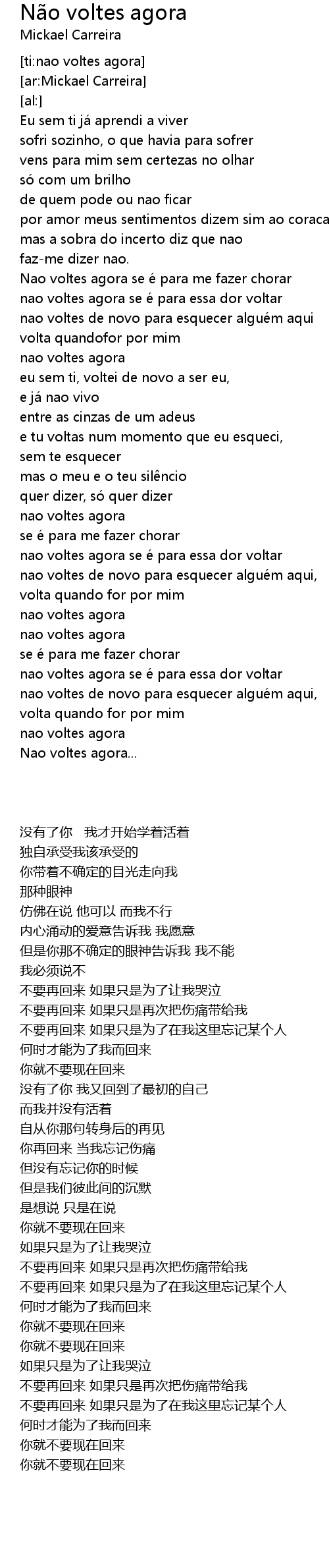 | [01:06.84] | Nao voltes agora se e para me fazer chorar |