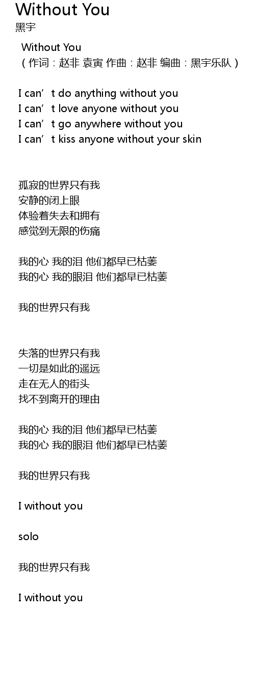 | (作词:赵非 袁寅 作曲:赵非 编曲:黑宇乐队) | |