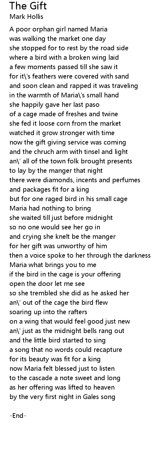 an\' all of the town folk brought presents |