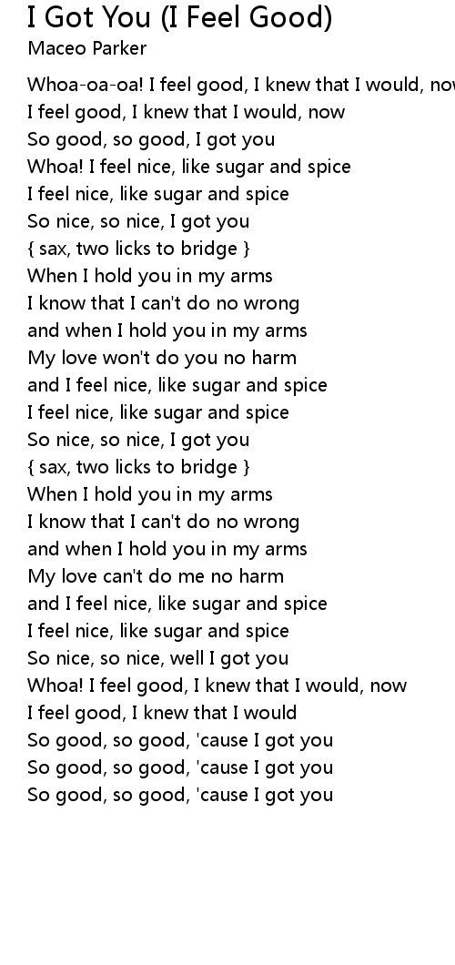 Whoa-oa-oa! I feel good, I knew that I would, now |