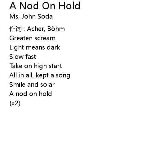 | Song | A Nod On Hold |