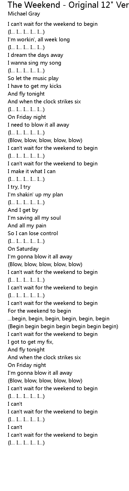The Weekend - Original 12" Version Lyrics