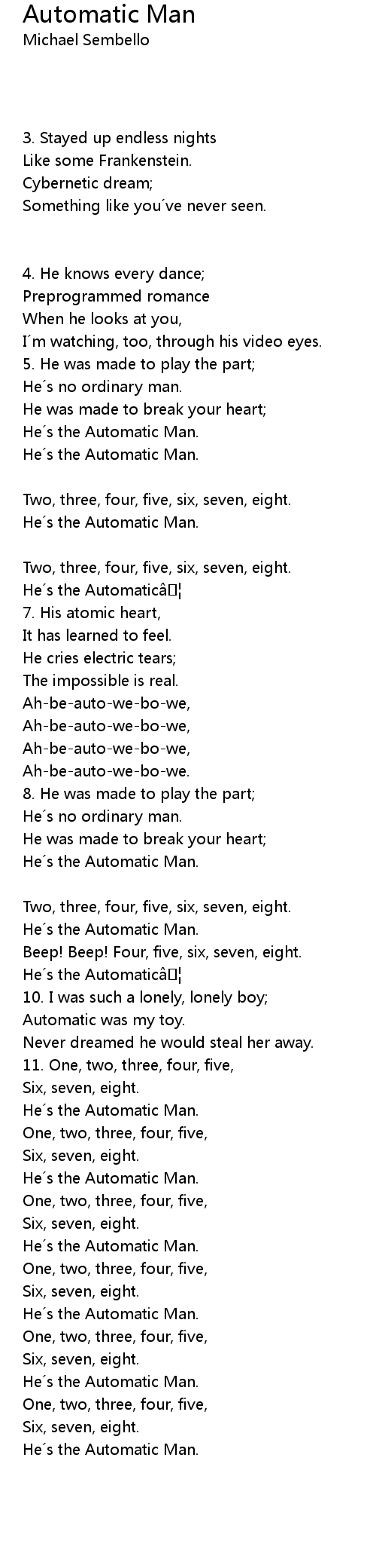 | Song | Automatic Man |