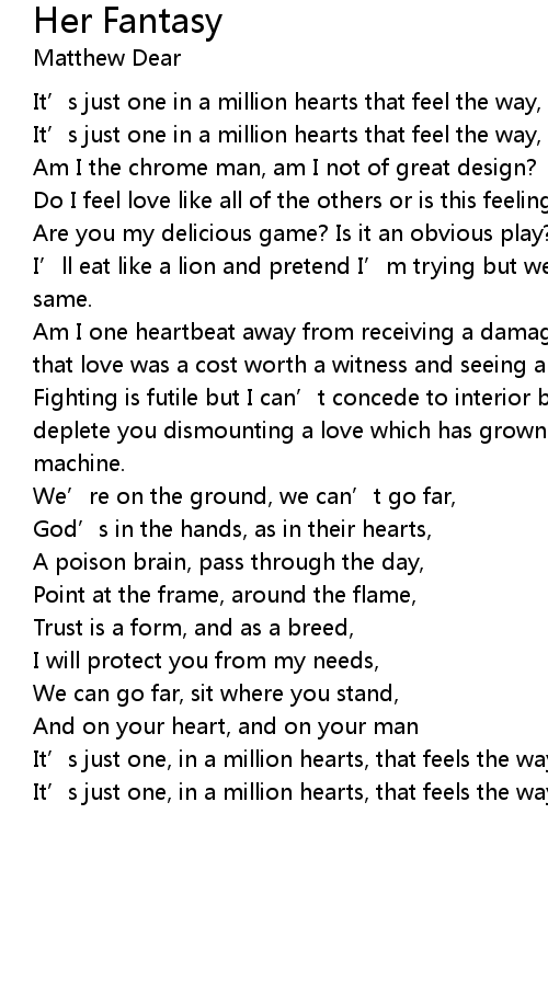 | It’s just one, in a million hearts, that feels the way, the way I do | |