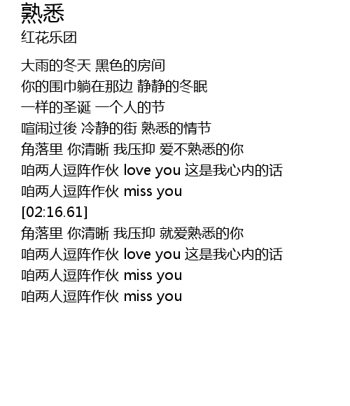 | [03:02.67] | 咱两人逗阵作伙 miss you |