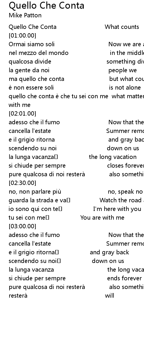 | [01:59.00] | quello che conta è che tu sei con me what matters is that you are with me |