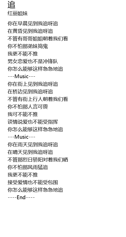 | [01:33.66] | 你怎么能够这样急急地追 |