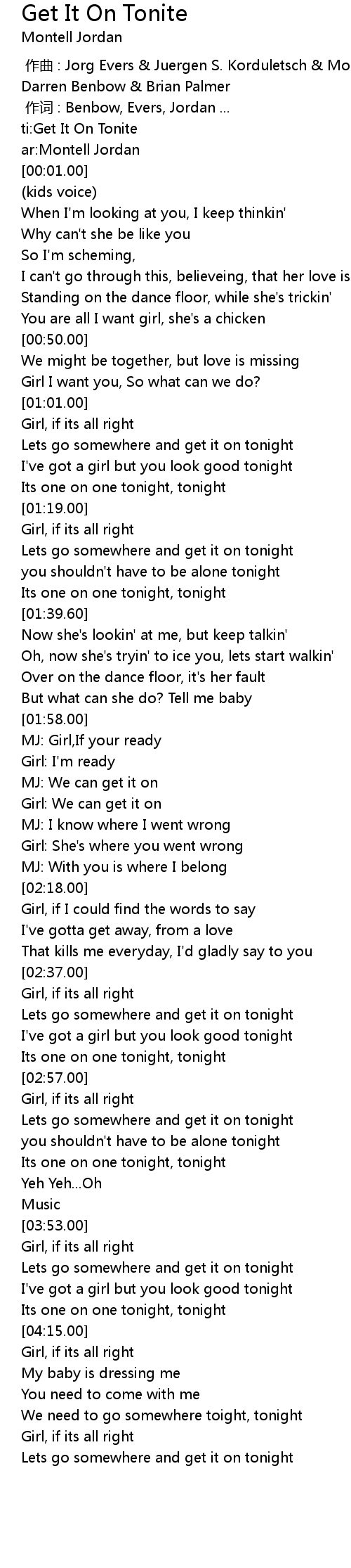 | [00:00.20] | ti: Get It On Tonite |