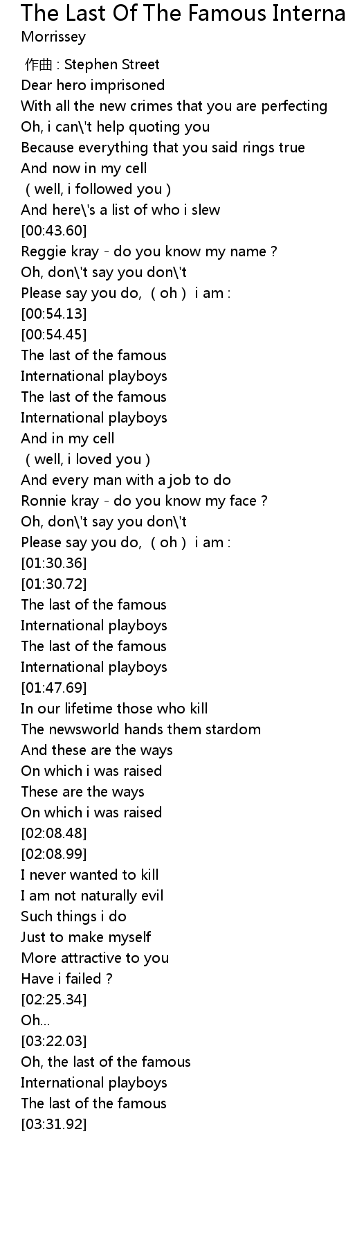 | [00:45.34] | Reggie kray - do you know my name ? |