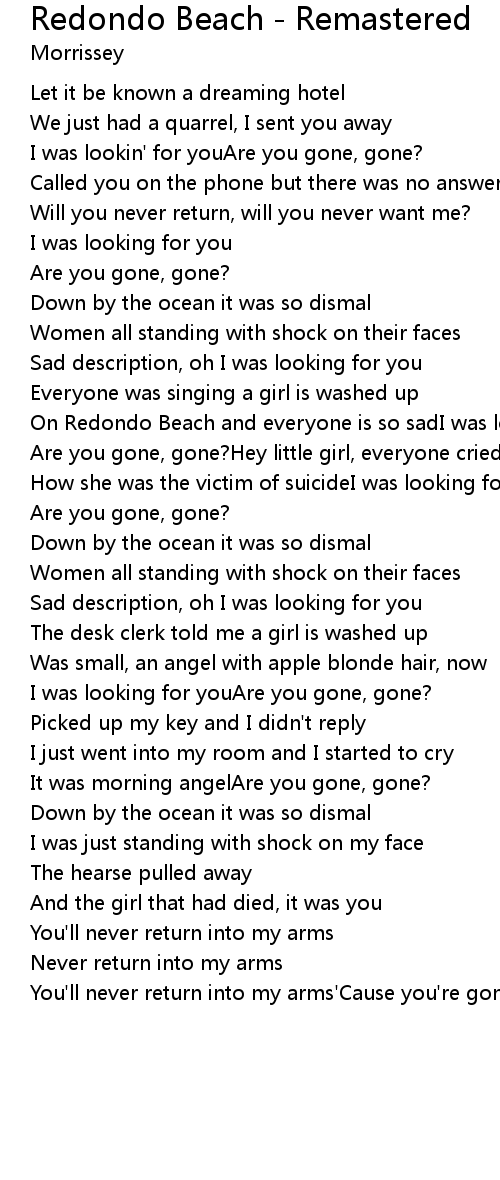 | On Redondo Beach and everyone is so sadI was looking for you | |