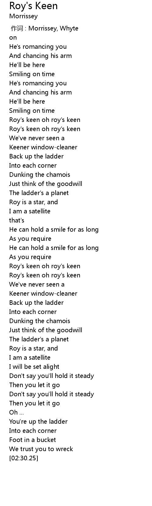 | [01:32.24] | Roy' s keen oh roy' s keen |
