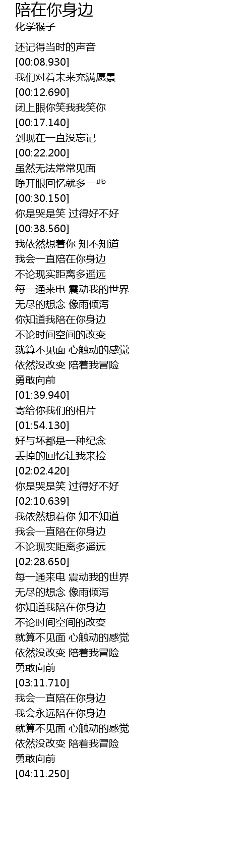 | [03:41.880] | wo hui yi zhi pei zai ni shen bian |